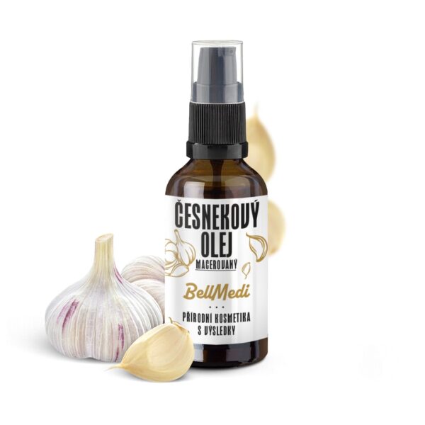 Česnekový olej obsahuje vysoký podíl antioxidantů, vitaminu C a minerálů, díky čemuž má silné antibakteriální, protiplísňové a protizánětlivé vlastnosti. Podporuje regeneraci pokožky, napomáhá otevírání pórů a přispívá k čištění pleti.