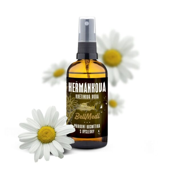 Heřmánková voda – květová voda na citlivou pleť, podráždění pokožky, akné, opruzeniny, tmavé kruhy pod očima a oční záněty